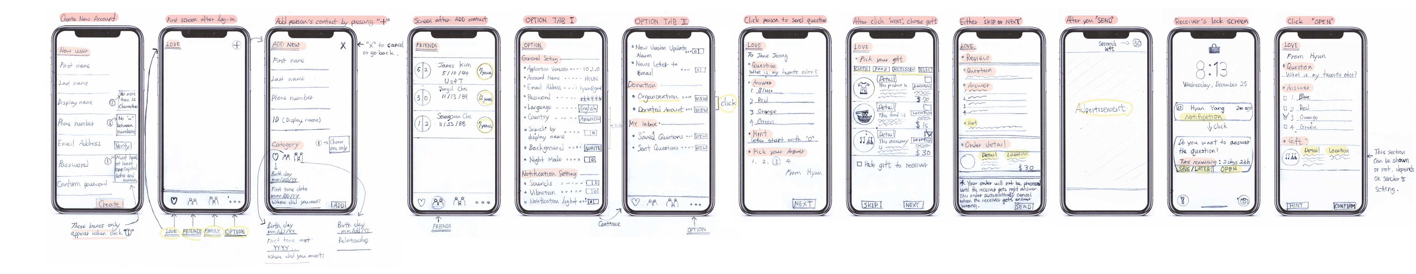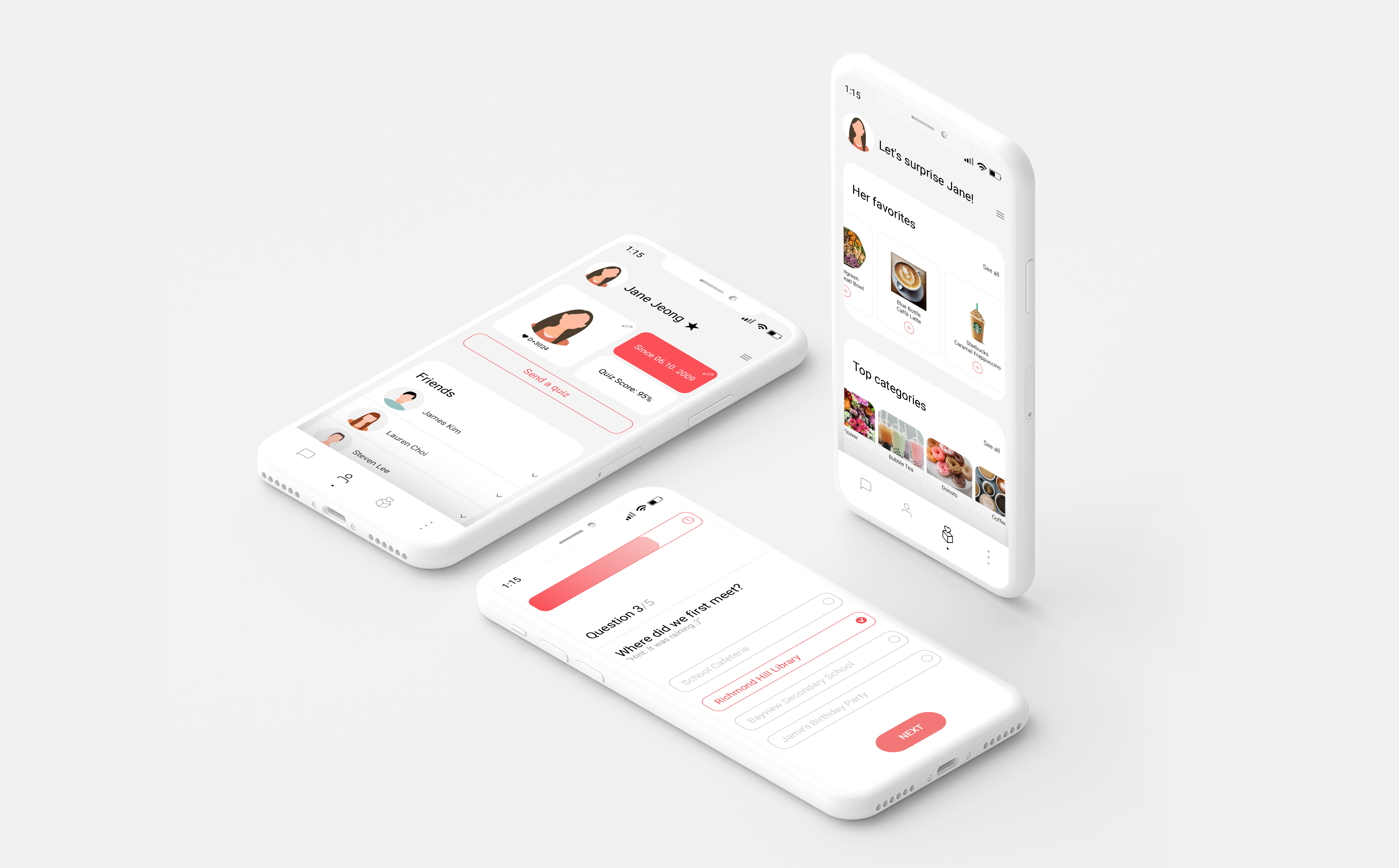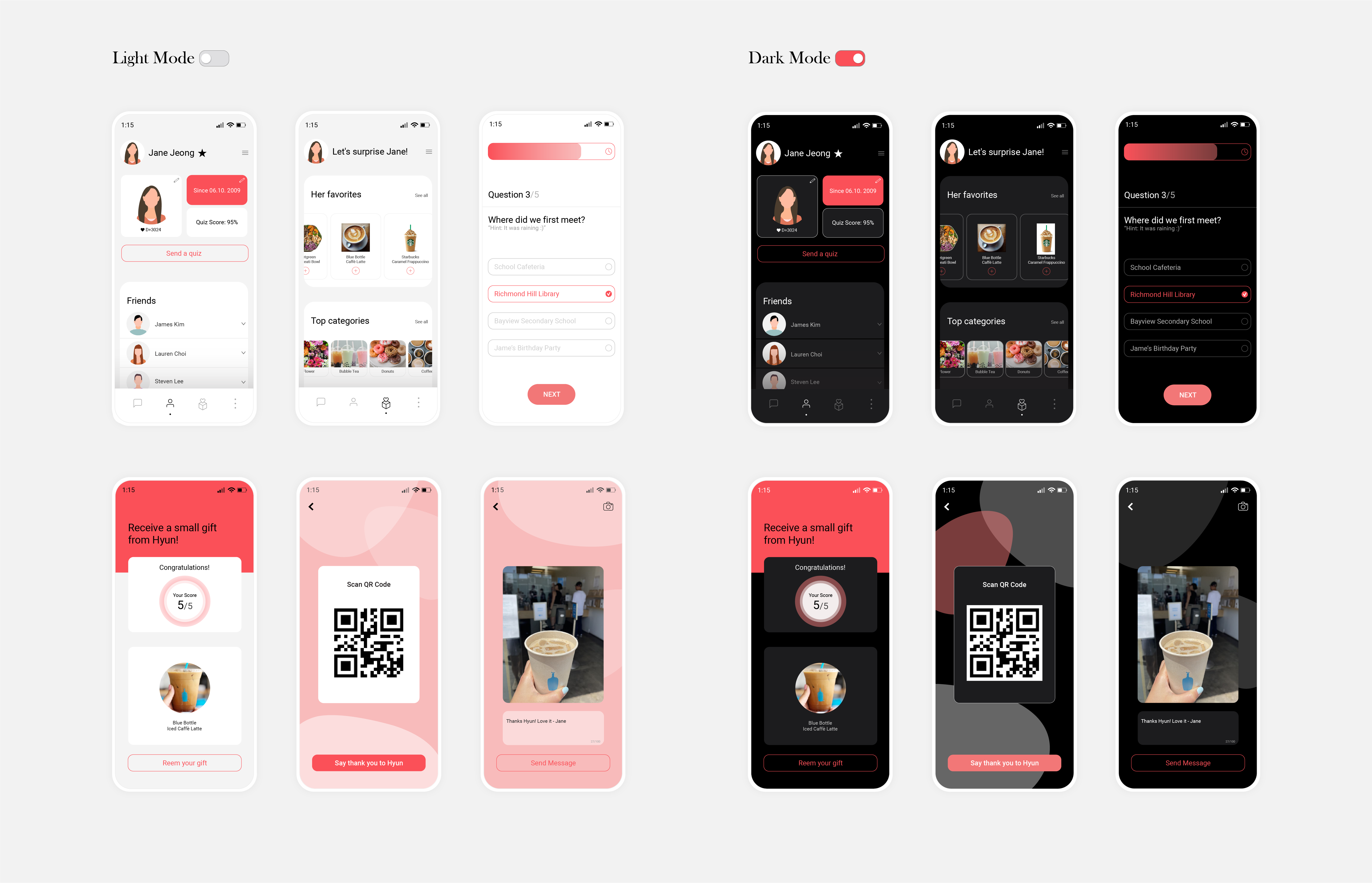 As mentioned briefly above, I didn't want to design this application simply as a means to send and receive messages. As I go through my daily life, there often comes a time when I want to share my moments with lovers. There are many times when we want to be together over a cup of delicious coffee, to eat ice cream together on a hot summer day, or to present a simple sandwich for a loved one who worked all night. At this time, I thought that it would be nice to be able to present a gift coupon with a simple message with super simple and fun quizzes!