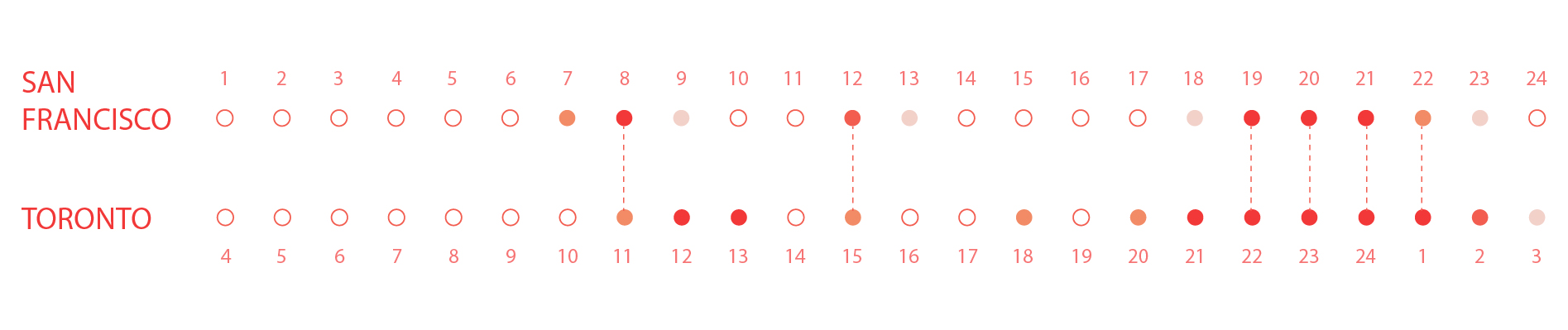 * Average contact time for different time zones