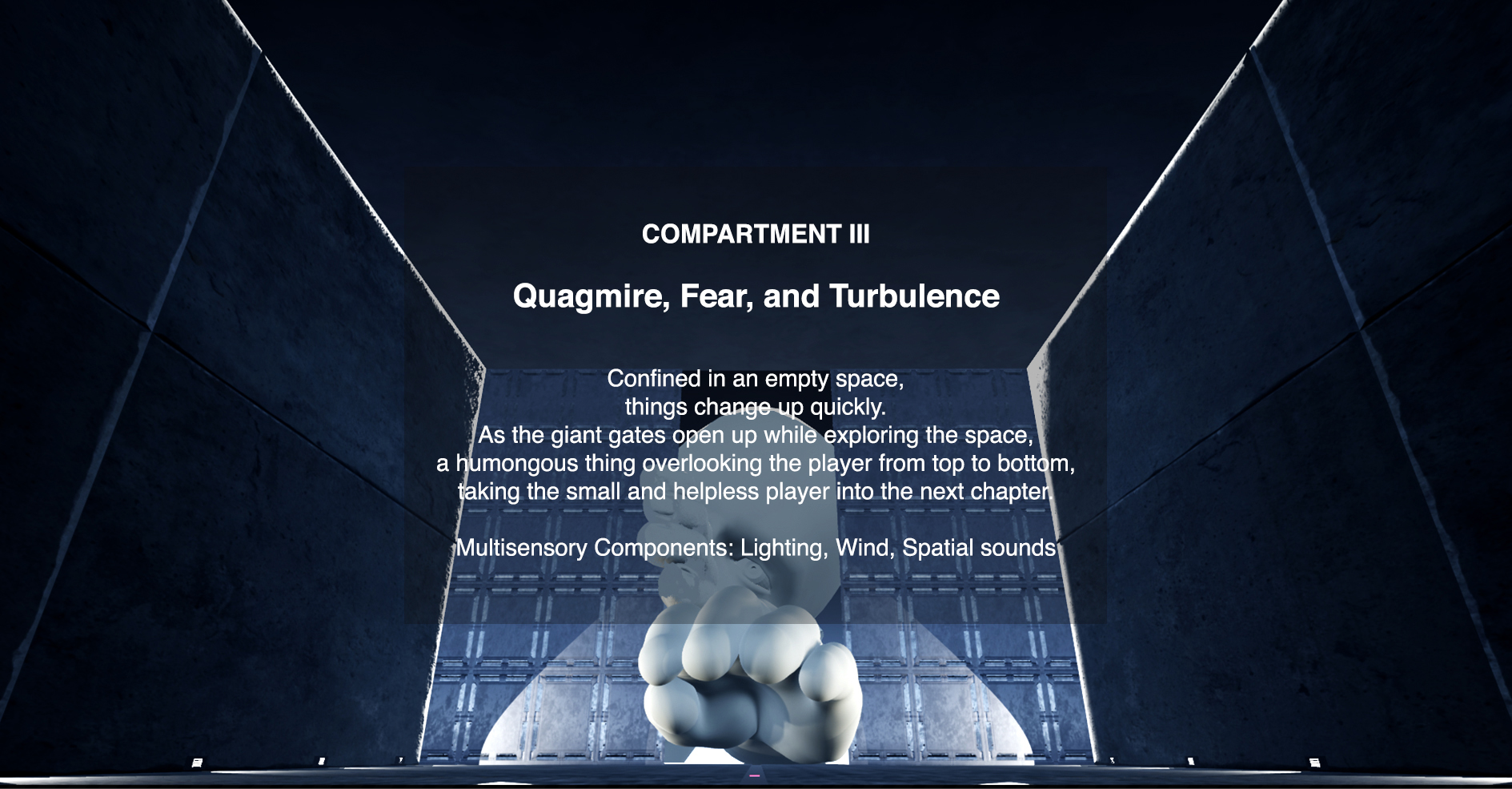 Players can navigate the space, interact with the scenes and find their way through various portals and key signs. Sound plays a huge role in setting the mood, and a multisensory experience for fog and wind adds to the realism.