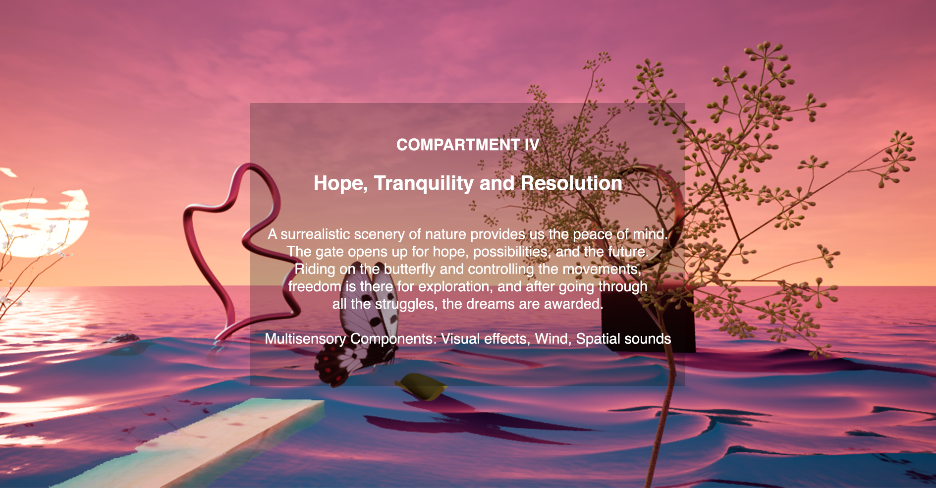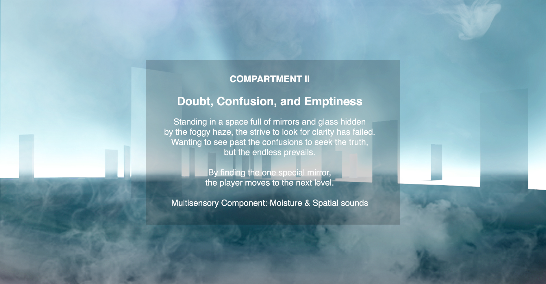 The video on the left shows the professors and students at NYU ITP department experiencing the actual product during the project presentation. While wearing the VR experience device (Oculus Quest 2) and exploring the virtual space, they were able to feel multiple emotions such as grandeur, mystery, fear, emptiness and peace through the sound and visual effects.