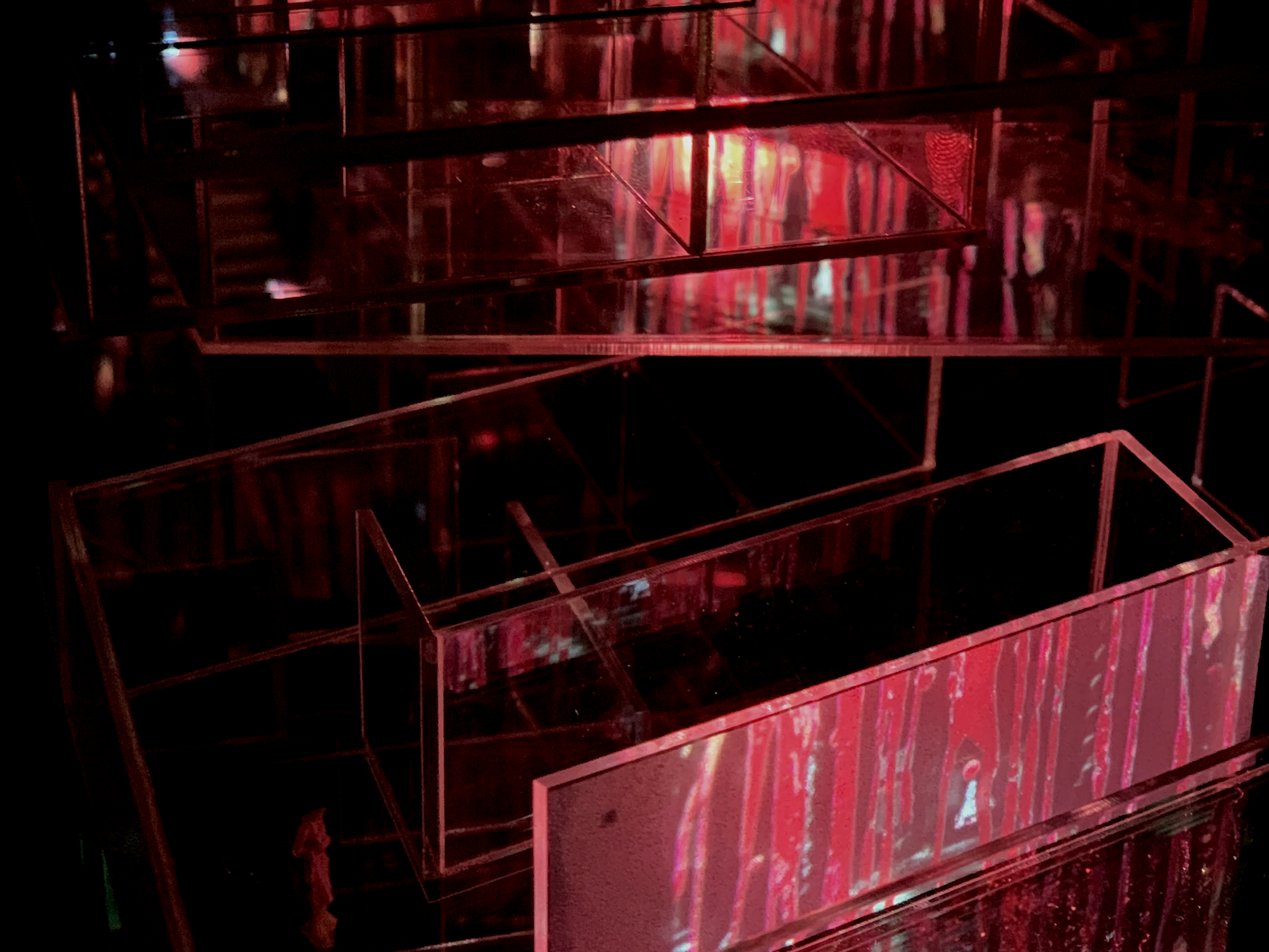 In addition, this project captures the moment when the perception of structure changes depending on the light and the viewing angle. Different spaces are stacked on top of each other and create one unified structure, and the images and shadows cast on the outside due to the transparent materiality create another space.